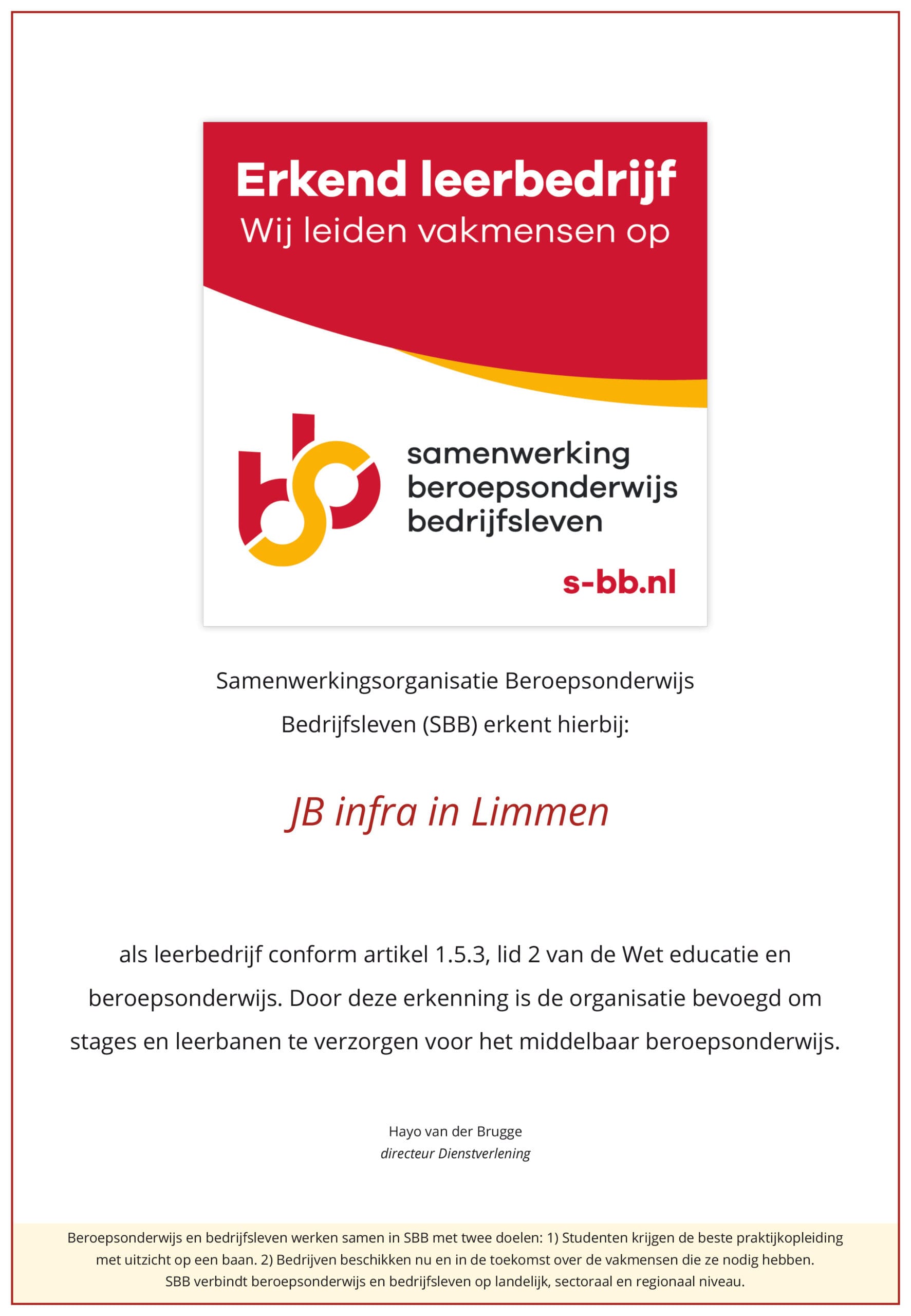 Zo’n vijf jaar geleden, in 2020, startte hij zijn bedrijf JB Infra. Het kende een voorspoedige start en ook na vijf jaar zit de groei erin: steeds meer klanten vinden de weg naar het bedrijf. Voor het aanleggen van rioolstelsels, de voorbereiding voor straataanleg, drainage of het plaatsen van kabels voor verlichting. ,,We ontzorgen onze opdrachtgevers van A tot Z”, zegt Boeree. ,,Uitgaand van de opdracht regelen wij het personeel met verstand van zaken, zodat altijd de juiste persoon op de juiste plek aan het werk gaat. Of het nu gaat om een nieuwbouwproject, de herinrichting van een wijk of een groot stuk grasveld. Wat de omvang van de opdracht ook is, wij gaan altijd voor topkwaliteit en een tevreden klant. Niet voor niets is ‘iets moois neerzetten’ elke dag weer ons motto.”